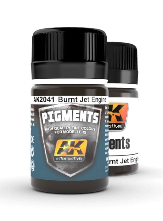 Burnt Jet Engine Pigmente werden zur realistischen Bemalung und Färbung von Effekten im Modellbau eingesetzt. Alterungs- und Verschleißspuren, sowie unterschiedliche Strukturen lassen sich mit Pigmenten wesentlich besser hervorheben. Staub-, Schlamm- und Rußablagerungen als auch die natürliche Alterung kann auf einfachem Wege nachgebildet werden. Pigmente sind besonders fein gemahlen und können in Verbindung mit allen im Modellbau verwendeten Lösungen (Wasser, Acrylharze, Terpentin, Öl, usw.) benutzt werden.