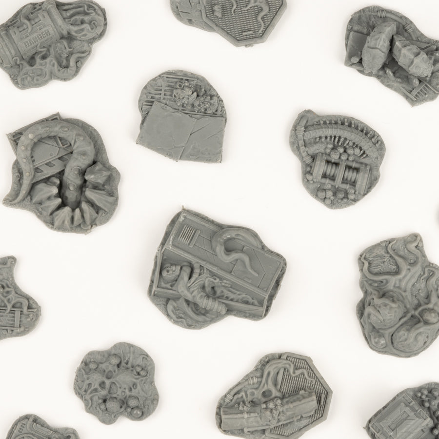 Ideal geeignet, um glitschige Böden darzustellen, die von tropfendem Alien-Schleim, verdrehten Ranken, zerfetzten Kabeln, fremdartigen Eiern und kleinen, unheimlichen Kreaturen überzogen sind. Zwischen den Überresten der einstigen Besatzung spiegelt sich der Horror wider, der diese ehemals menschliche Umgebung in eine albtraumhafte Szenerie verwandelt hat.