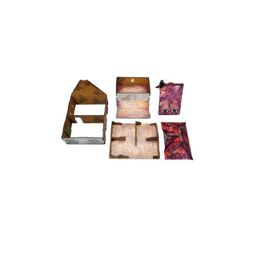 Mehrfarbig vorbemaltes (UV-bedrucktes) 2-stöckiges WW2-Normandie-Bauernhaus mit begehbarem, farbenfrohem Innenraum, abnehmbaren Ebenen und abnehmbarem, zerstörtem Erdgeschoss. Platz für einen ganzen Infanterietrupp im Inneren. Vorgeschnittene transparente Fensterscheiben aus Acryl liegen bei. Wahlweise mit offenen oder geschlossenen Fensterläden und Türen zusammenbaubar.
