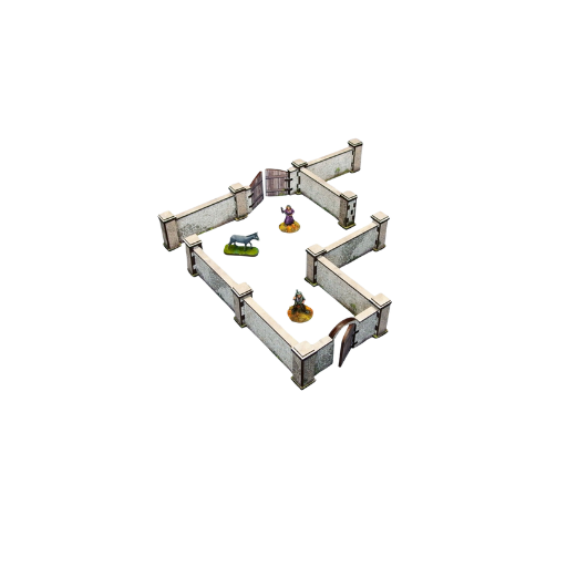Mehrfarbig vorbemaltes (UV-bedrucktes) modulares WW2 Normandie-Gelände mit hoher Steinmauer und Tor. Das Tor kann während des Spiels geöffnet oder geschlossen werden. Volle Deckung für Infanterie und harte Deckung für Fahrzeuge, eine perfekte Verteidigungsposition.