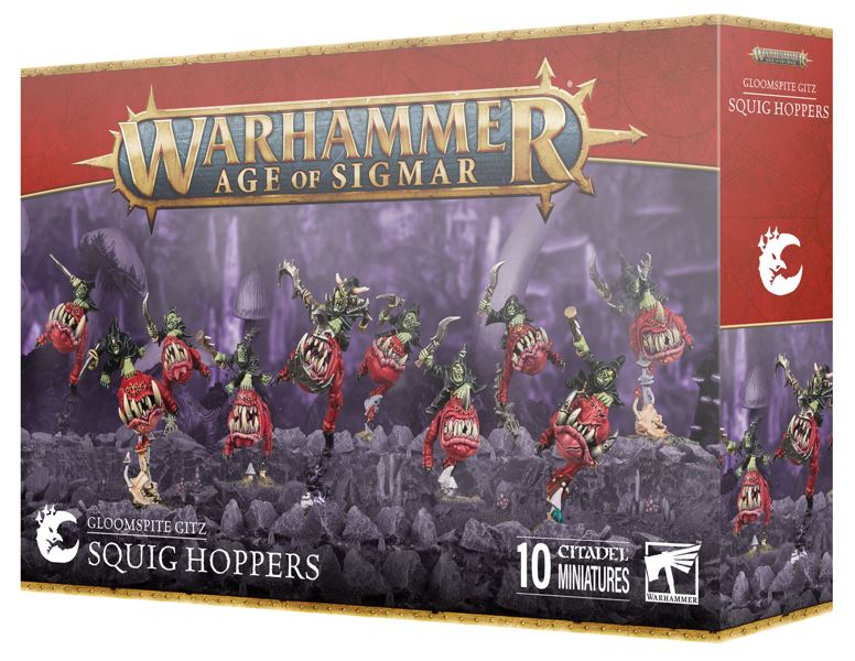 Dieser herrlich chaotische Kunststoffbausatz enthält alles, was du brauchst, um 10 Squig Hoppers zu bauen – Grot-Kavallerie der unkontrollierbaren Sorte. Dank der Vielzahl an Zungen, Squig-Fratzen, Waffen, Körpern und albernen Hüten kannst du jedem Modell seinen ganz eigenen Wahnsinn verpassen. Enthalten ist auch ein besonders bekloppter Boss mit Kapuze und einem gepanzerten Squig-Schädel, falls du jemanden brauchst, der vorgibt, die Kontrolle zu haben.