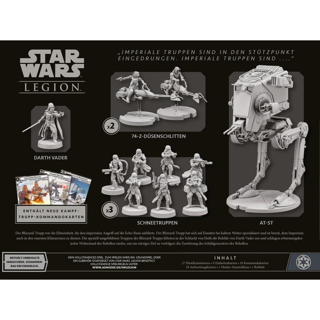 Das Kampftrupp-Starterset: Blizzard-Trupp für Star Wars™: Legion enthält 27 detaillierte Miniaturen sowie neue Einheiten-, Kommando- und Aufwertungskarten. Mit diesem Set kannst du eine schlagkräftige Armee des Galaktischen Imperiums aufbauen und sofort ins Gefecht führen. Ob als Einstieg oder zur Verstärkung bestehender Streitkräfte – der Blizzard-Trupp bringt tödliche Effizienz auf das Spielfeld.