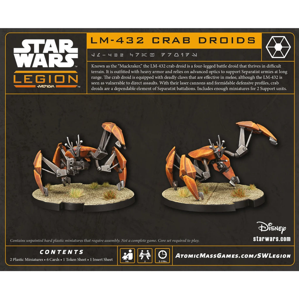 Der LM-432-Krabbendroide – auch bekannt als Krebsdroide – ist ein robustes und vielseitiges Kriegsgerät, das für unwegsames Gelände konzipiert wurde. Seine vierbeinige Konstruktion ermöglicht ihm einen stabilen Stand auf nahezu jedem Untergrund, sei es Schlamm, Schutt oder unebenes Terrain. Mit seiner dicken Panzerung, präzisen Sensorik und schweren Laserkanonen ist der Krabbendroide eine zuverlässige Unterstützungseinheit, die sowohl Verteidigungsstellungen sichern als auch offensive Operationen begleiten kann. In den Armeen der Separatisten ist er ein Symbol für unnachgiebige mechanische Überlegenheit.