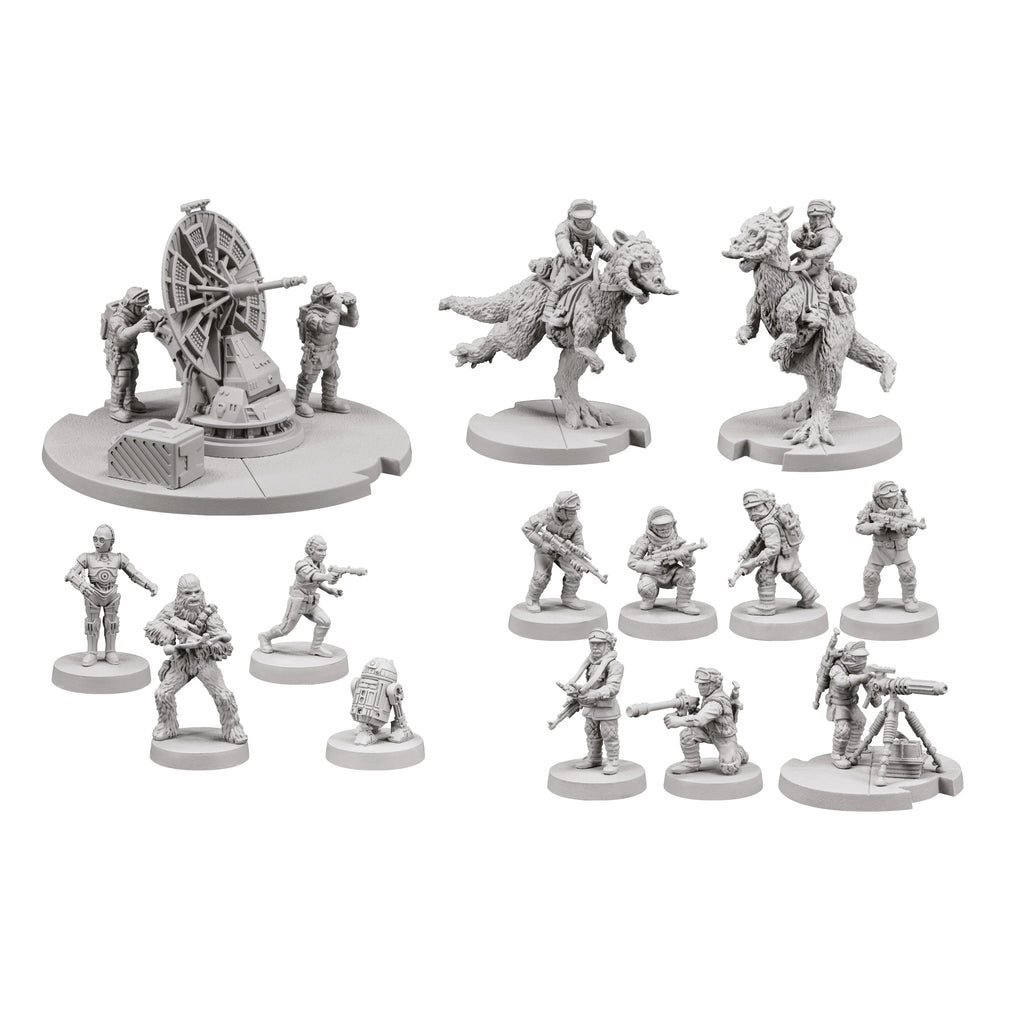 - Enthält Commander Leia Organa, 4 Einheiten Rebellen-Veteranen, 2 Einheiten Tauntaun-Reiter, 1 Einheit 1.4-FD-Lasergeschütz-Team