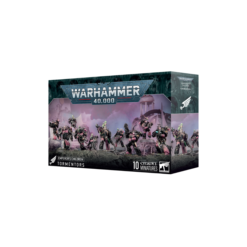 Die Tormentors der Emperor’s Children sind brutal effiziente Frontkämpfer in prunkvoller Servorüstung, die mit sadistischer Freude in den Krieg ziehen. Getrieben von ihren Begierden und einem unstillbaren Verlangen nach Schmerz – sowohl dem eigenen als auch dem ihrer Feinde – verkörpern sie den verdorbenen Willen ihres Primarchen.