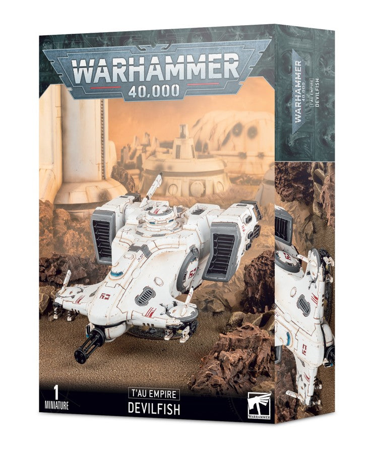 Der TY7 Devilfish – von den Truppen der T'au liebevoll „Teufelsrochen“ genannt – ist das Rückgrat der mobilen Kriegsführung des Sternenreichs. Dieses vielseitige Transportfahrzeug bringt Krieger sicher und schnell dorthin, wo sie gebraucht werden, und bildet zugleich eine stabile Feuerplattform, um Feinde in Schach zu halten.