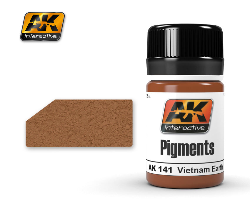 Vietnam Earth Pigmente werden zur realistischen Bemalung und Färbung von Effekten im Modellbau eingesetzt. Alterungs- und Verschleißspuren, sowie unterschiedliche Strukturen lassen sich mit Pigmenten wesentlich besser hervorheben. Staub-, Schlamm- und Rußablagerungen als auch die natürliche Alterung kann auf einfachem Wege nachgebildet werden. Pigmente sind besonders fein gemahlen und können in Verbindung mit allen im Modellbau verwendeten Lösungen (Wasser, Acrylharze, Terpentin, Öl, usw.) benutzt werden.