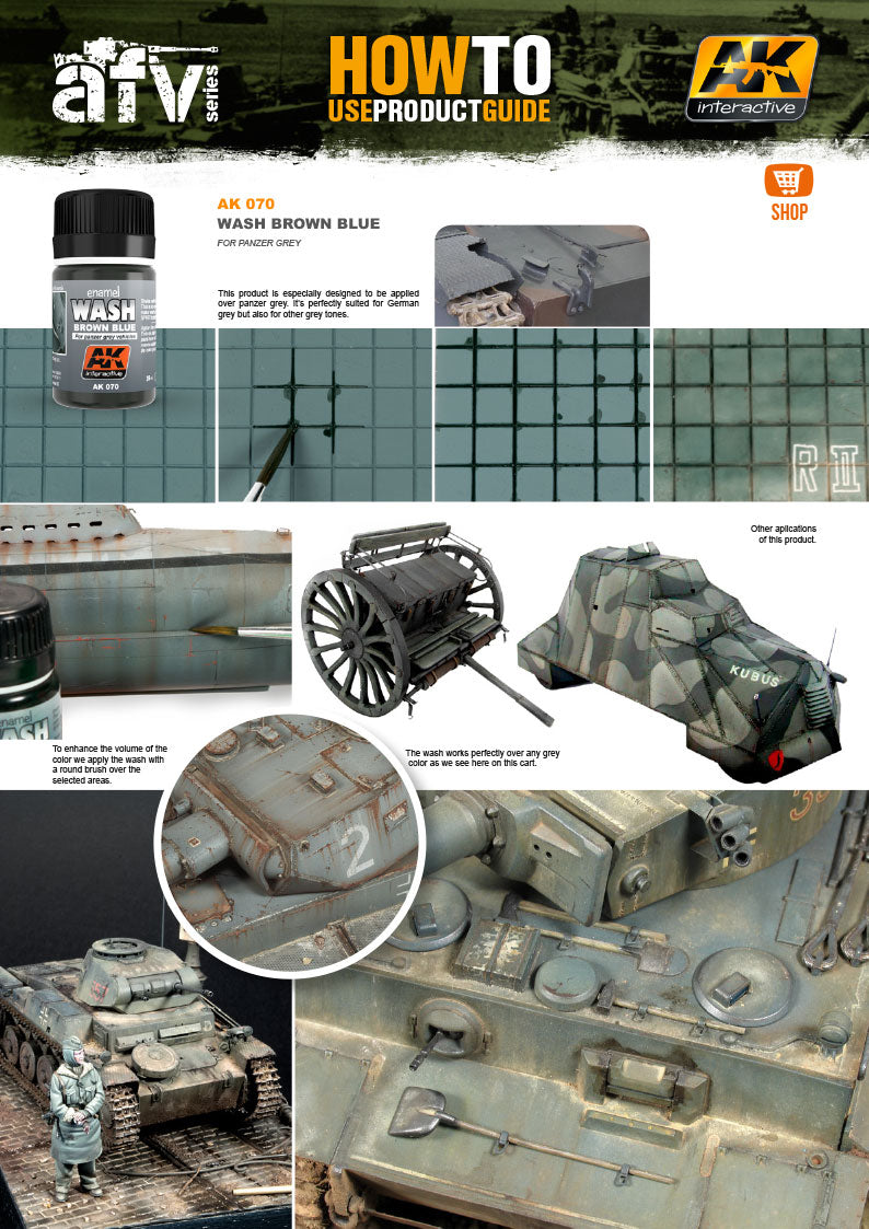 AK Interactive Weathering Products wurden entwickelt um leicht, verblüffend realistische Ergebnisse an Modellen und Miniaturen zu erzielen. Dadurch sind sie perfekt für alle Aspekte des Modellbauhobbys, egal ob Historisch, Fantasy oder SciFi. Auf jeder Flasche ist ein Beispiel von dem zu erzielenden Effekt abgedruckt.