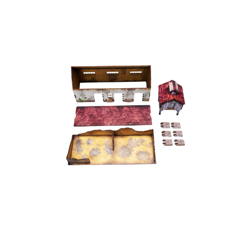 Ein Set aus 2 mehrfarbig vorbemalten (UV-bedruckten) WW2 Normandy Stable w. Dovecote Gebäuden mit begehbarem bunten Innenraum, abnehmbarem Dach und zerstörtem Erdgeschoss des Hauptgebäudes. Im Inneren ist Platz für eine ganze Infanterieeinheit. Vorgeschnittene transparente Fensterscheiben aus Acryl liegen bei. Zusammenbau wahlweise mit offenen oder geschlossenen Türen.